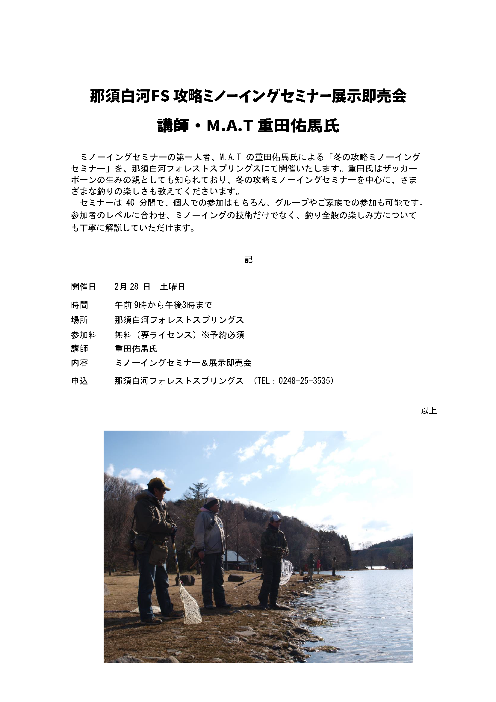 那須白河FS攻略ミノーイングセミナー&展示即売会 開催!