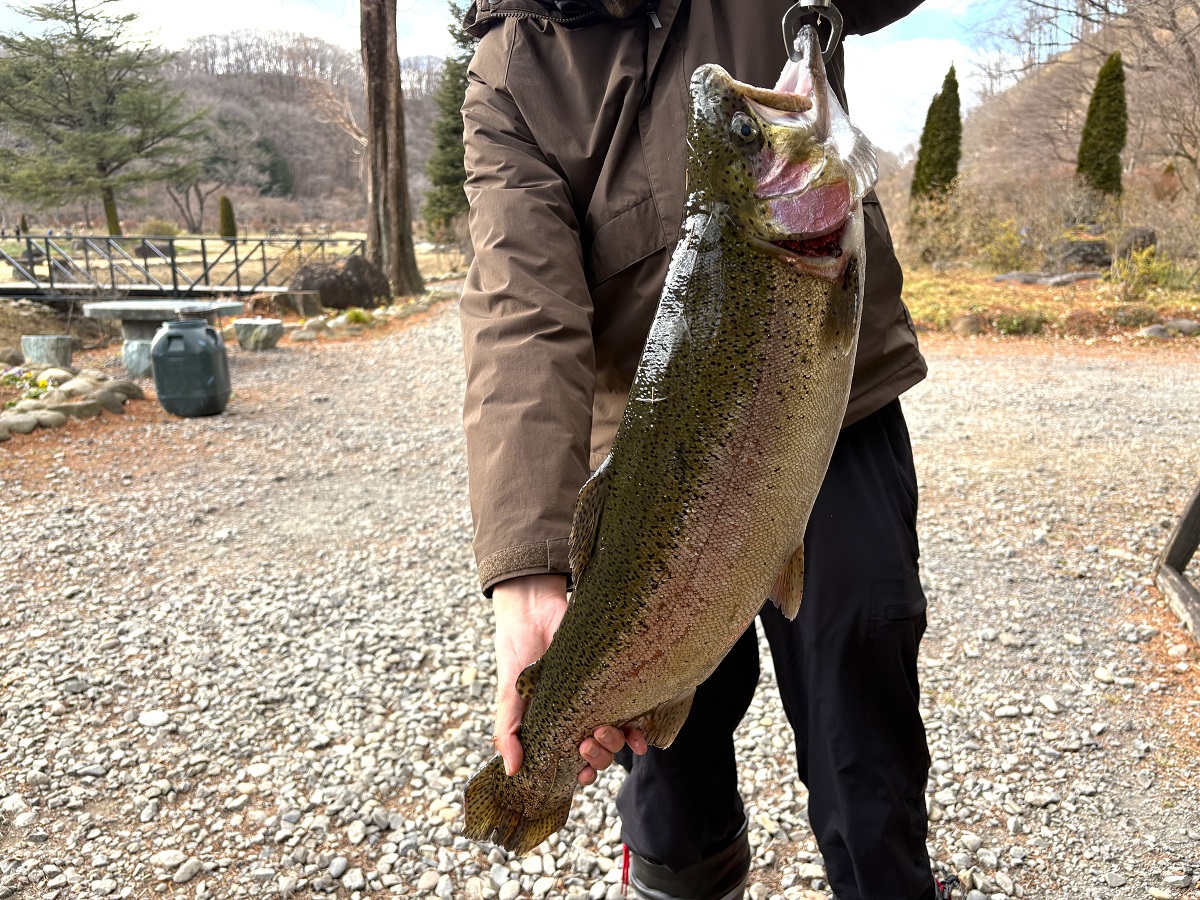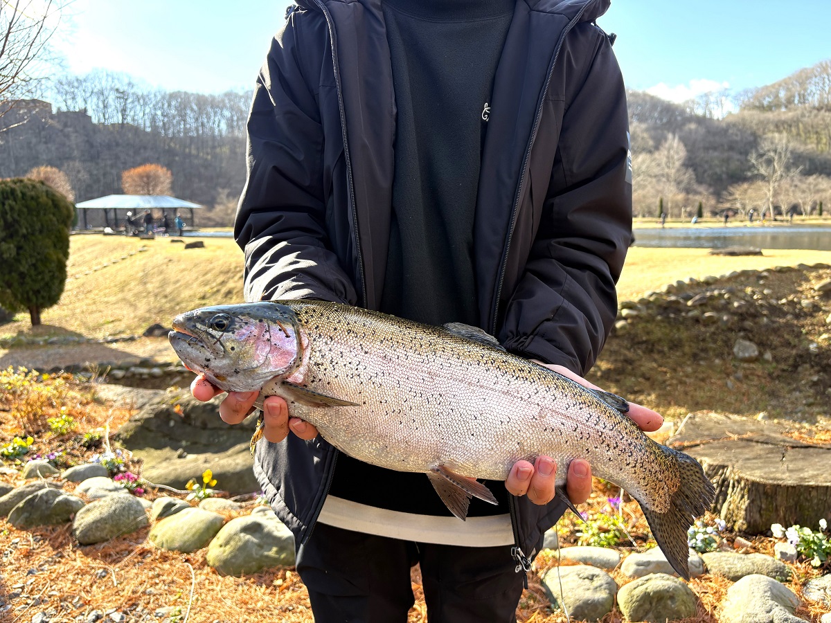 現在、那須白河FSでは、あちこちでこのような良型が釣れています。
