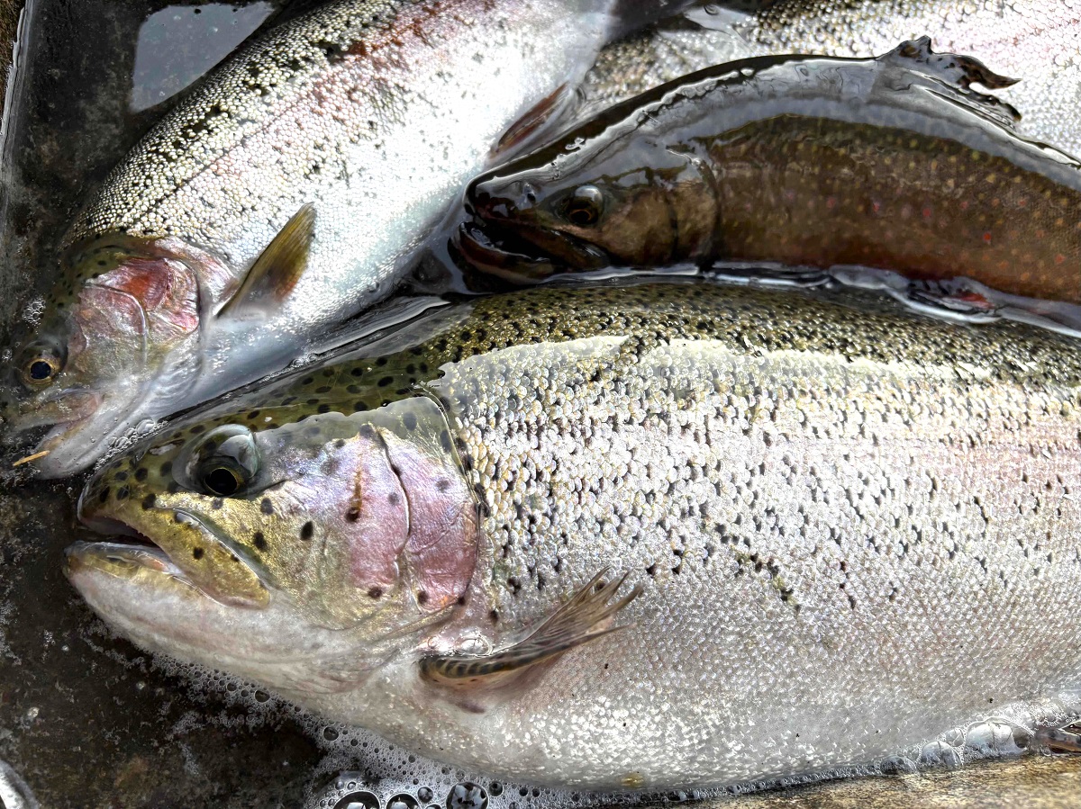 棚倉町のバスフィッシャーマンさんの登場〇子様、本日も良型の60cm超えのトラウトを釣られていました。ルアーは、ロデオクラフトのモカ(プラグ)だそうです。