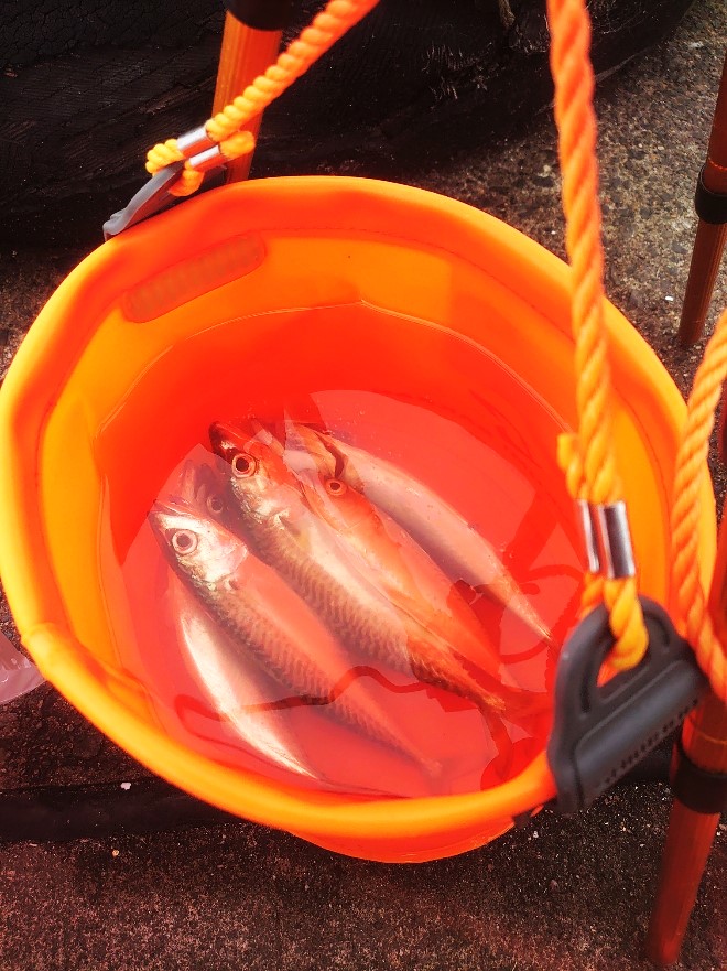 いわき市のアクアマリンにある海釣り公園に行ってきました。10/3 金曜日の朝、4:00〜ぶっ込みやサビキ釣りをしていましたが釣果が0匹きとの状態でした。ダイソーのメタルジグ(チューニングした物)を7:00から試して釣果は下の写真となりました。小鯖 ゲット。