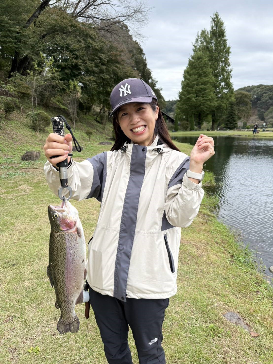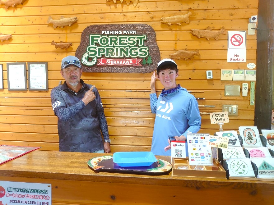 10/13 祝日の日に宮城からの釣りガールの1枚です。会社に釣り部があるらしいです。普段は蔵王フォレストスプリングを利用しているらしいですが今日はお仲間さんと遠征で来てくれました。笑顔いっぱいの写真です、誰かに似てませんか〇〇アナウンサーに・・・・・。