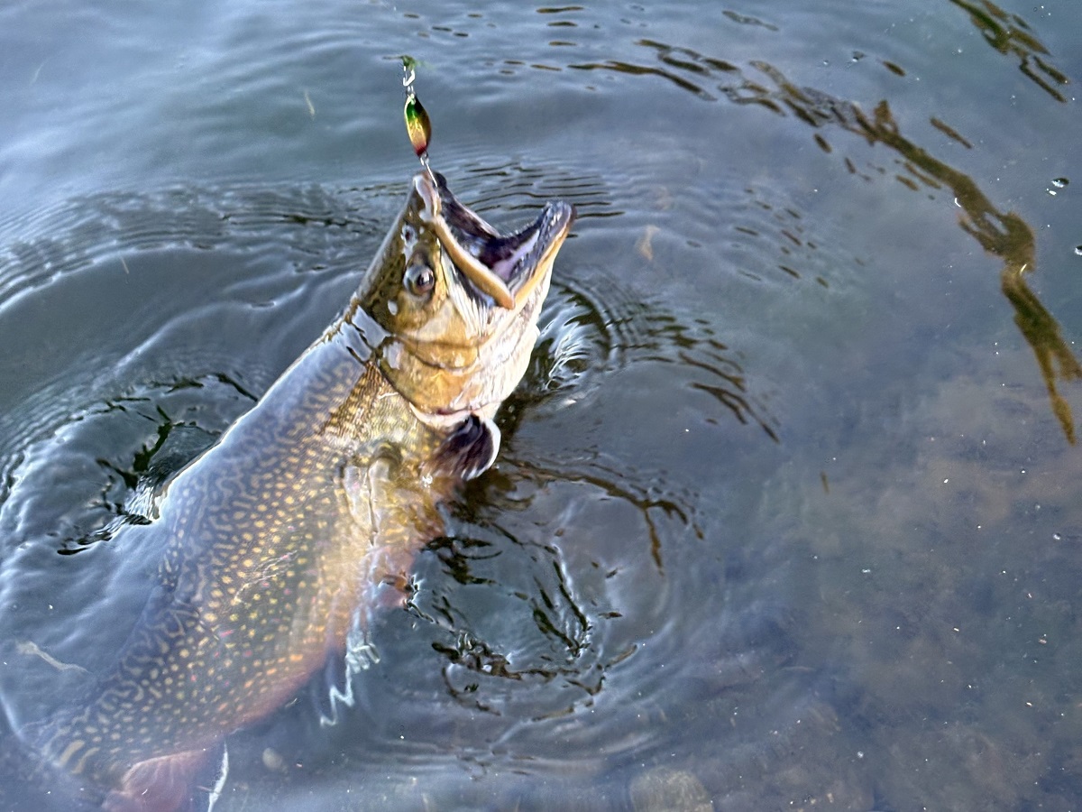 使用ルアーは、リバーオールドの「ウルトラベスパ」。カラーはFSオリカラの「キラキラレインボー」。