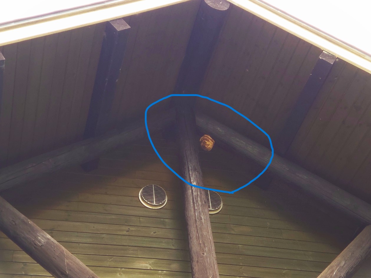 スズメバチが下屋根に巣をつくり一回落としたのですがまたすぐに巣をつくていたので大きくなる前に撃破しました。最強スプレーを活用しての完全勝利となりました。