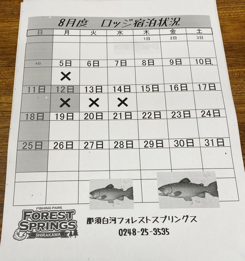 | シャローエリア ビックワン2024釣り大会を8/25日曜日に開催致します。参加資格はシャローエリア規定の女性、小学性6年生以下の男女。ルアー、フライ、大会ルール厳守。エントリー券は無料で別途ライセンス券は必要。競技基準は大物1本勝負、キープは規定通り10本までOK(キープはリリース不可)。大会時間は8:00〜12:00までの4時間となります。検量時間は11: 00〜12:00まで5〜10分後 表彰式の流れとなります。参加者は予約制、25人で予約終了です。まだまだ空きはありますので予約の希望の方はTELをお待ちしています。0248-25-3535