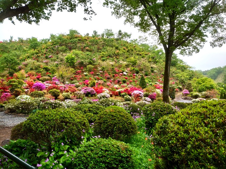 見どころのフォレストスプリングスです。朝は曇っていましたが昼前から小雨が降ったりやんだりのハッキリしない天気。花野華ではツツジが綺麗に咲いて見どころとなっています。見学には入場料は無料ですのでご来店ください。